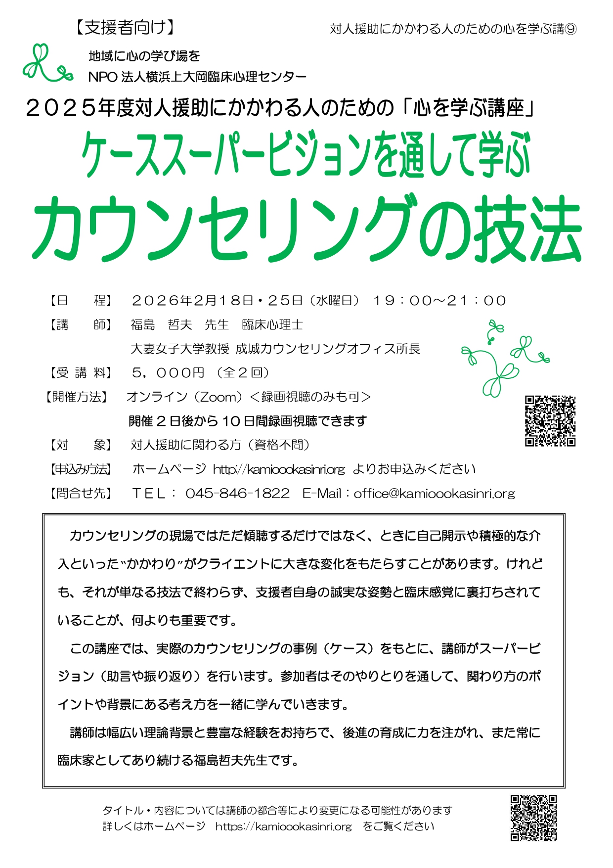 - 学会・研修会に横浜上大岡臨床心理センター「ケーススーパービジョンを通して学ぶカウンセリングの技法」のご案内を掲載しました。